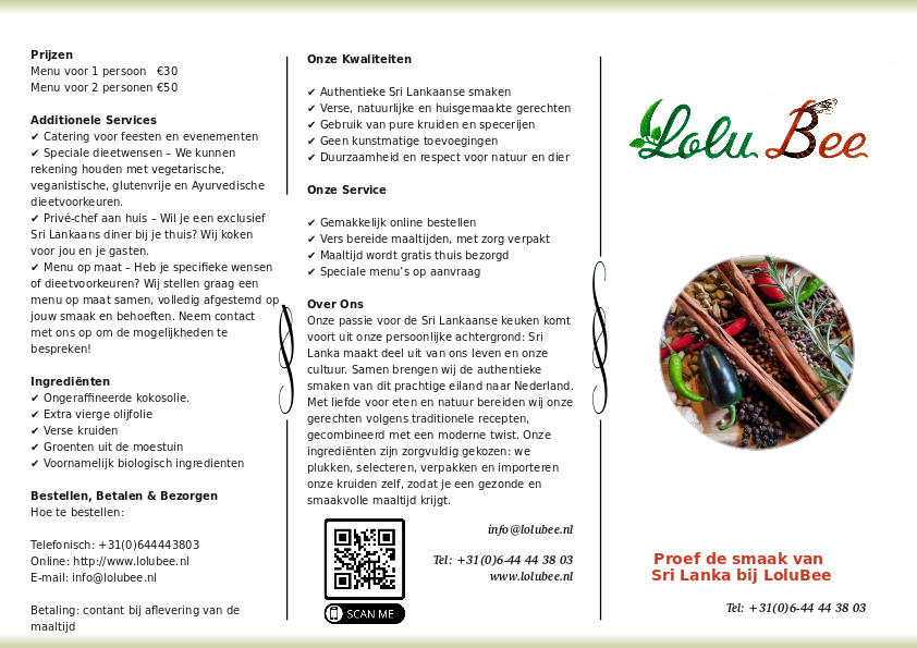 Bij LoluBee bereiden we maaltijden met aandacht voor gezondheid, smaak en kwaliteit. Onze gerechten zijn altijd gemaakt van zoveel mogelijk biologische groenten en andere natuurlijke ingrediënten. Vis kan op het menu staan, maar we koken geen vleesmaaltijden.